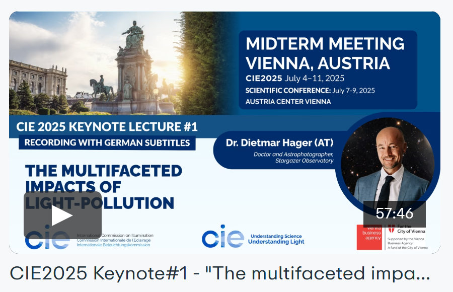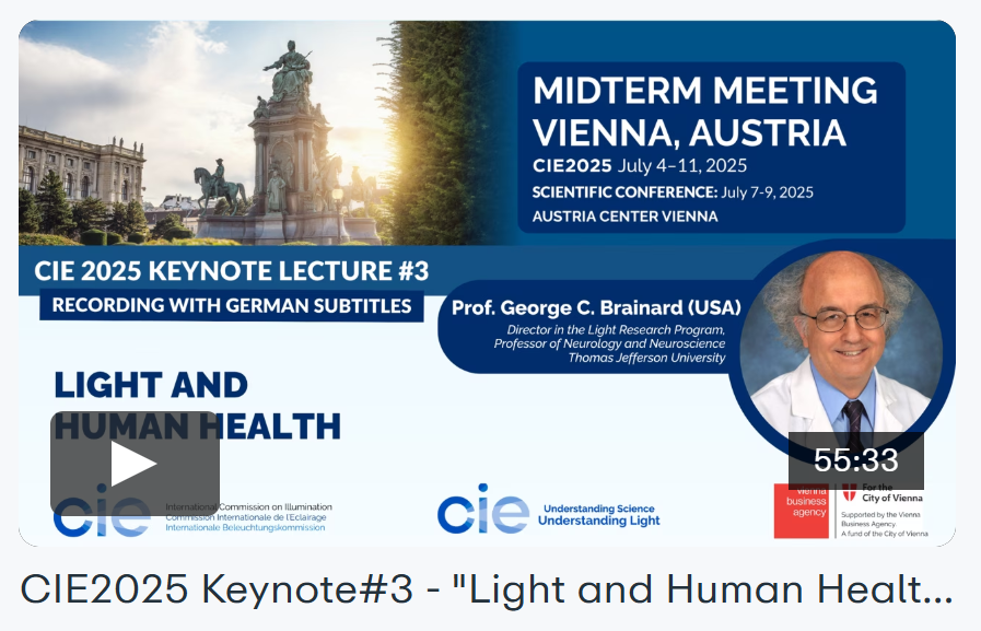 Als Teil des CIE-Projekts „Understanding Science – Understanding Light“ wurden die Keynote-Vorträge der CIE 2025 Scientific Conference (die vom 7.–9. Juli 2025 in Wien stattfand) öffentlich zugänglich gemacht – mit deutschen Untertiteln.